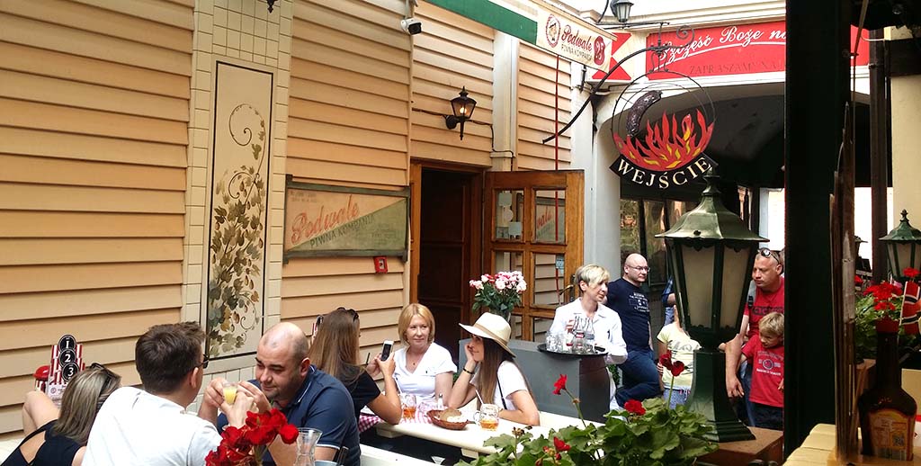 Самый центр старого города, особенно основные его улицы - Пивна и Длуга (Piwna и Dluga) усыпаны кафе, пабами и ресторанами. Заведения общепита расположены на первых этажах исторических зданий вдоль этих улиц одно за другим.