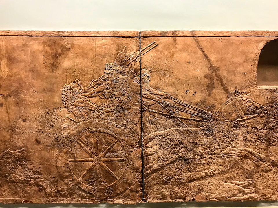 Одного зала со знаменитой охотой Ашурбанипала на львов достаточно чтобы погрузить даже человека с минимальным воображением в транс. Каменные плиты с изображением охоты на львов украшали стены царского дворца, раскопанного в середине XIX века сэром Генри Лейардом. Датируются они серединой VII в. до н.э. Сесть на скамейку и минута за минутой вести взгляд по каждой мышце львиного тела, изогнувшегося в атаке или предсмертной агонии.
