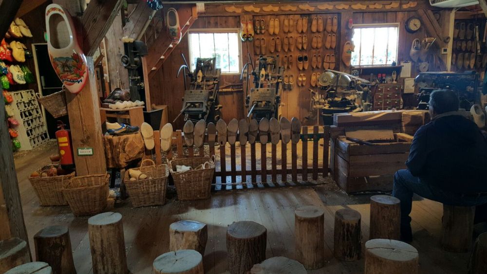 В одном из магазинов показывают, как изготавливаются кломпы:
