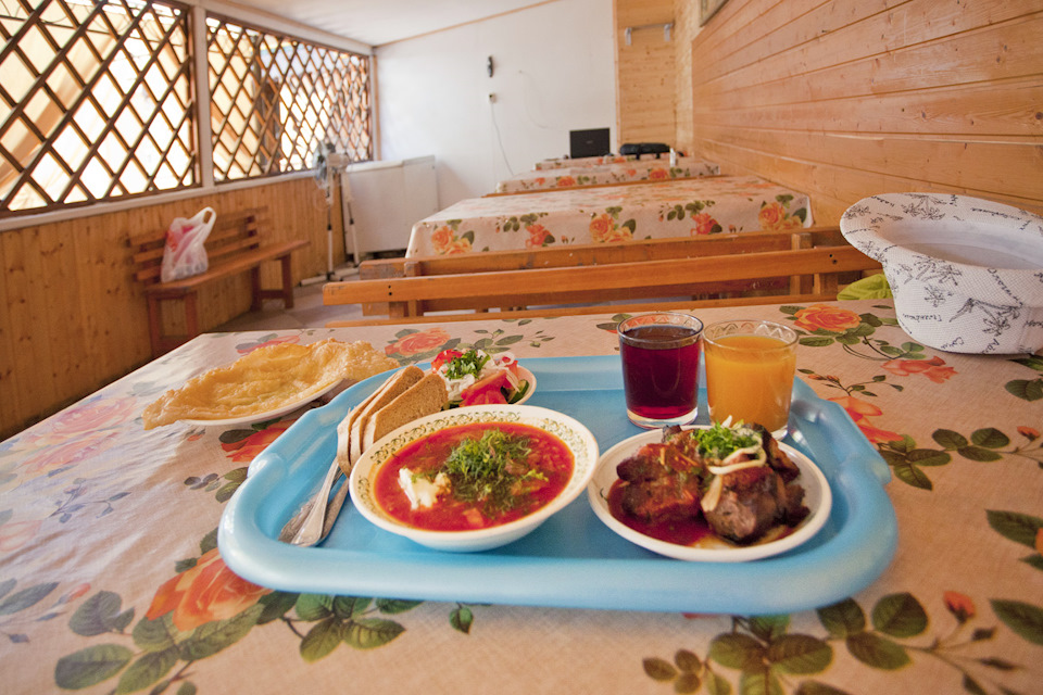 Место интересно своим оформлением — смесь русских и кавказских мотивов. Уютная деревенская атмосфера повсюду — плетень с горшками, маслобойка, печь. Хозяин готовит сам, еда опять же смесь восточной и русской кухни. Шашлыки, вино домашнего изготовления, салаты из овощей, которые собирают тут же в огороде.