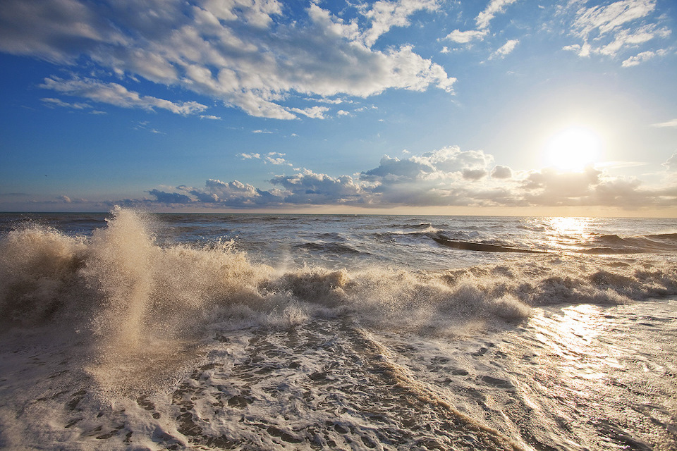 А на следующий день с умиротворением наблюдать и радоваться, как успокаиваются волны, как нежно замурлыкало море, снова призывая войти в его теплые воды. Заманивает Черное море, а заходящее солнце ласково пригревает: "Скорее купаться, не бойся! :-)"