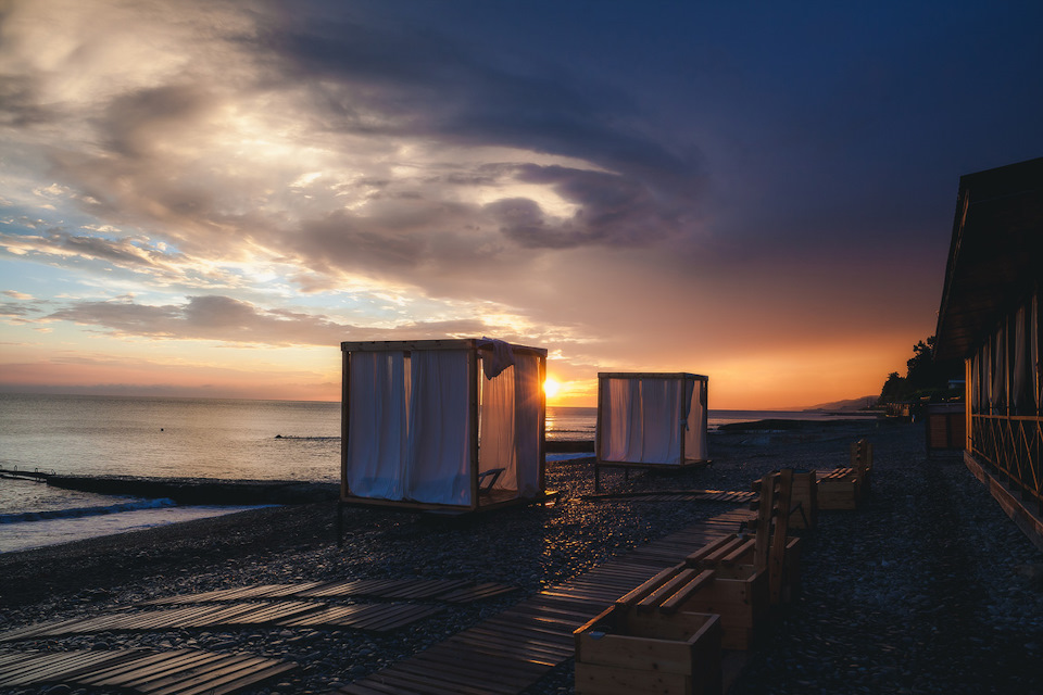 Людей уже нет, лежаки все собраны и убраны до утра, наступают сумерки.