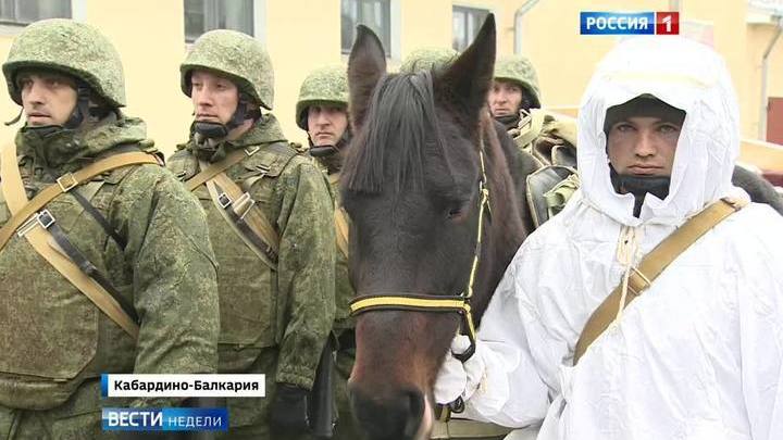 В горах сейчас хоть и стало безопаснее, но в республике все же неспокойно. Как только оперативный штаб выявляет бандитов и террористов, на задачу выдвигаются лучшие и самые подготовленные силы Росгвардии. Воевать в горах — настоящее искусство. Единственный в своем роде горный конный полк расквартирован в Кабардино-Балкарии. Эти лошадки несут на себе провиант и минометы на высоту до 5 тысяч метров. Техника там бессильна, а лошадь может перевозить груз до 90-120 килограммов.
