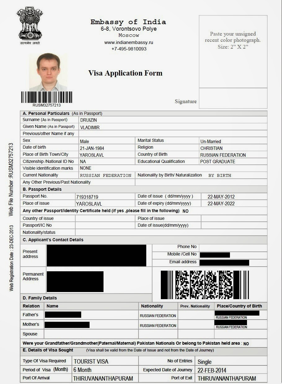 Для того, чтобы самостоятельно подать документы на визу в Индию необходимо предоставить в один из визовых центров следующий пакет документов:
