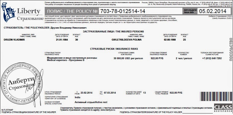 Оформление страховки не является обязательным условием для въезда в Индию. Если вы решили ее оформить, то рекомендуем полис от Liberty-страхование (КИТ-Финанс). Компания предлагает самые низкие цены. Оформить полис можно онлайн через сайт компании.