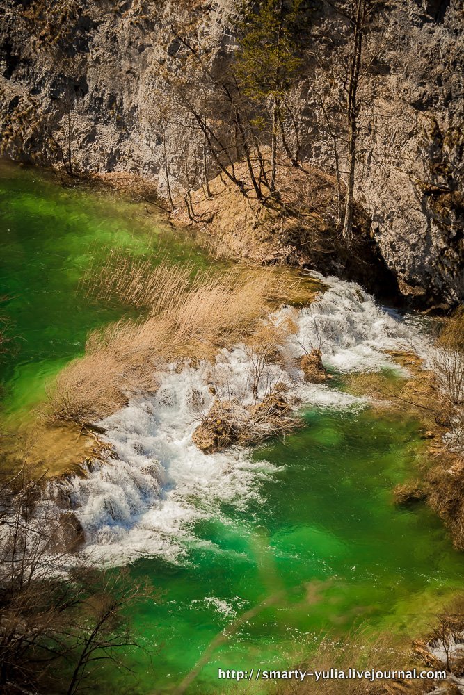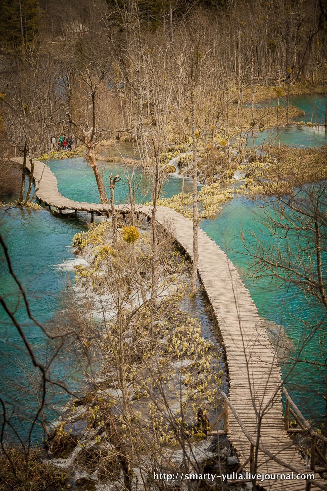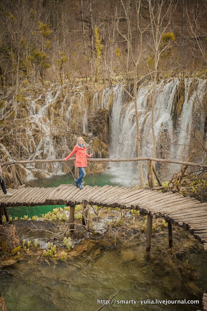 А потом мы поехали в Плитвицы! Дорога шла через горный перевал и туннели, и когда мы из них выехали, то оказались в зиме(( Кое-где местами лежал снег, листьев на деревьях не было совсем, даже почек! А еще моросил дождь и дул холодный ветер! Рестораны были закрыты, поесть негде. Номер в отеле оказался очень базовым, как в студенческом общежитии (((