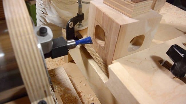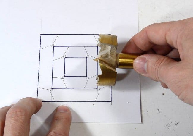 Но данные квадратные отверстия будут более эффектно выглядеть, если вырезать их пантороутером. Можно получить больший куб на внутренней стороне, не приближаясь к внешним краям малого куба так близко, как это произойдет в случае с круглыми отверстиями от коронки.