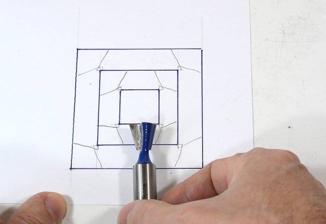 Фрезерование с использованием долота типа "ласточкин хвост" заключается в том, что нет возможности постепенно увеличивать глубину. На широком конце долота имеется неглубокий проход, который обрезает материал.
