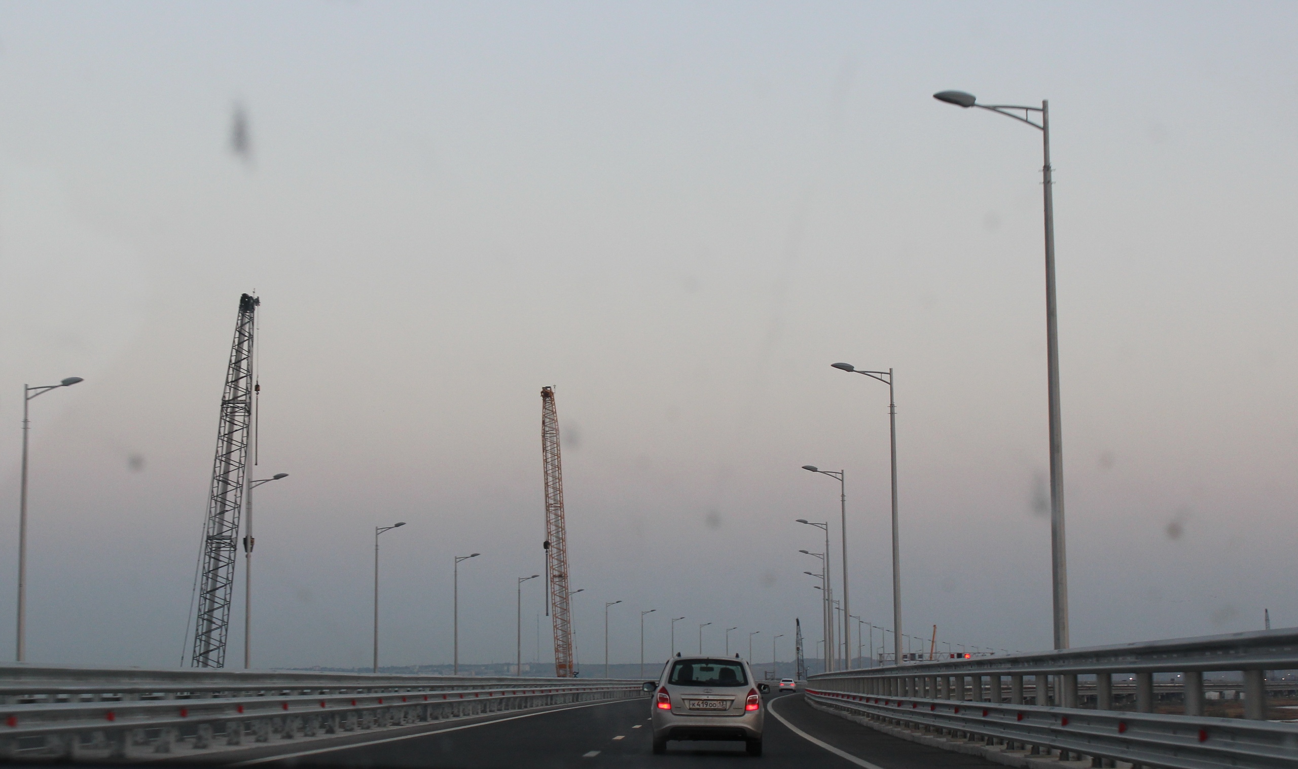 Итак, первое с чем придется столкнуться, уезжая из Крыма — это ремонтные работы. Тавриду всё еще строят, временами дорога с ней пересекается, иногда даже пускают проехать по отдельным её участкам. Пробки в Симферополе, пробки под Феодосией. Пробки в любом туристическом городе. Местные жители признаются, что не помнят такого наплыва туристов на машинах. Причиной тому Крымский мост. Многие хотят прокатиться по нему. Есть даже экскурсии по Крымскому мосту. Ну не знаю мост и мост, хоть и впечатляет своими размерами.