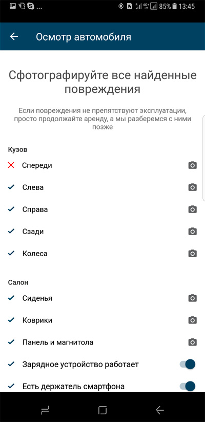 - если кузов поврежден, или в салоне грязно и следы вандализма - уведомить об этом службу поддержки, подкрепив замечания фотографиями.