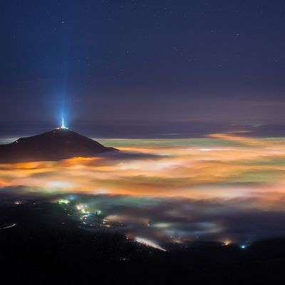 Одно из них это самая высокая в Европе телевышка, высотой 112 метров, а по вечерам она подсвечивается разными цветами, и становиться украшением города.