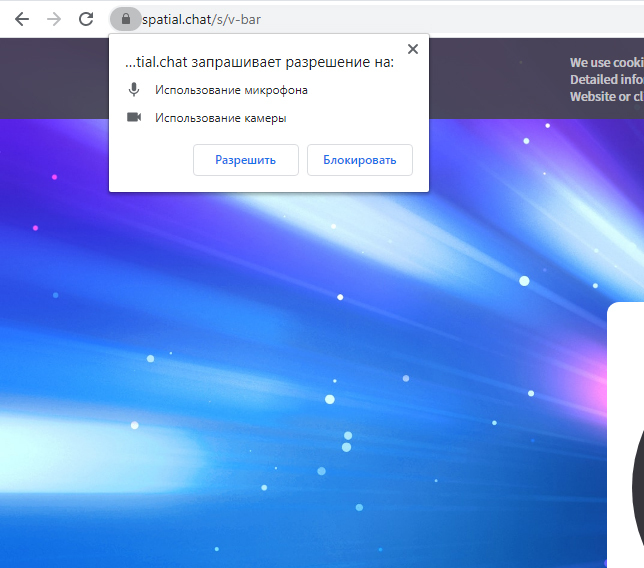 У вас в браузере появится надпись как на картинке - просто нажмите РАЗРЕШИТЬ - без этого вы не сможете общаться голосом и не камеру друг с другом.
