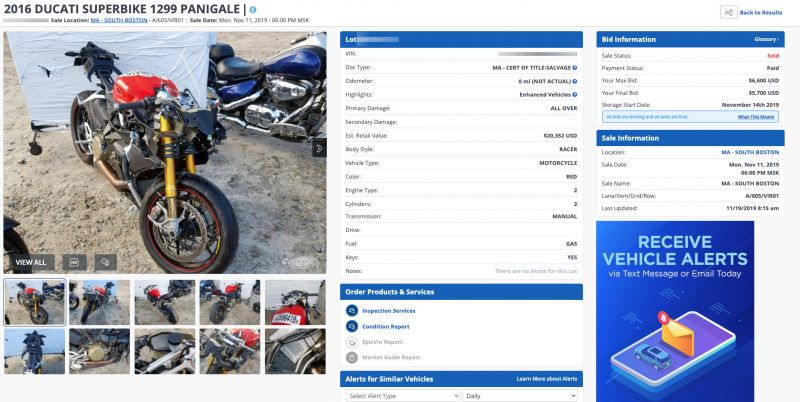 | Ducati тоже продаются на мотоаукционе. С доставкой и растаможкой за такой Panigale придется выложить в районе $11 тысяч |