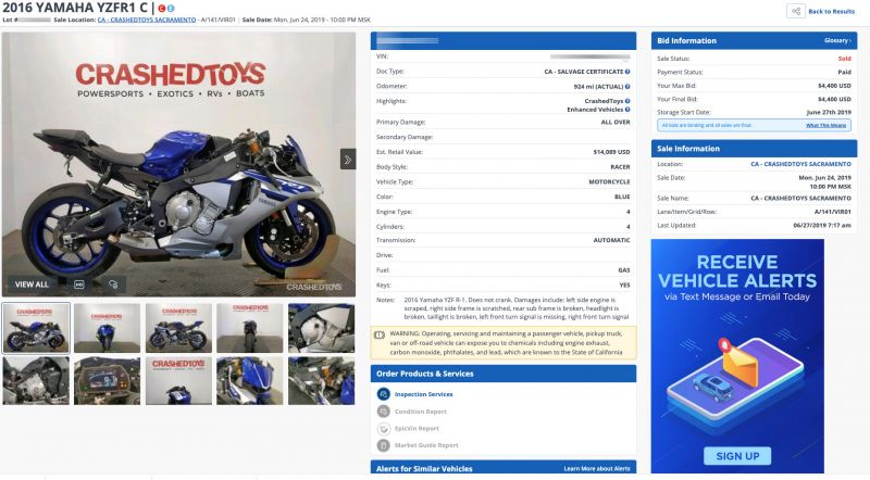 | По нашим расчетам, после доставки и ремонта эта Yamaha YZFR1 C стоила примерно $8 825 |