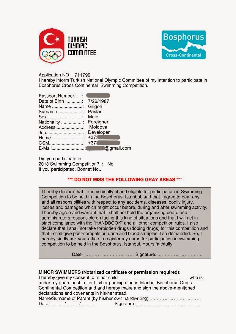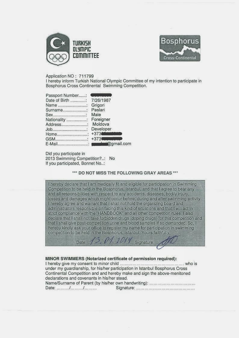 Пол года назад я загорелся идеей переплыть босфор. Казалось бы, ну что тут может быть сложного, кроме самого заплыва? Но до заплыва еще далеко, а кое-какие вопросы/проблемки/переживания уже возникали - я имею в виду регистрацию.