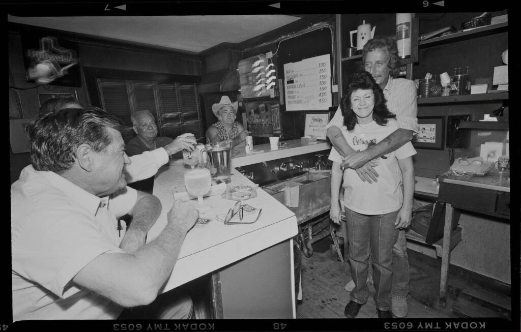 А вот салун более основательного формата: настоящей стойкой и даже парой столов (а ящики вместо стульев — это и до сих пор модно). И, ликуйте, миксологи — даже в такой брутальной глуши бармен был в подтяжках и бабочке. И выбор алкоголя — шире. Но, о профессиональной барной станции говорить еще рано.