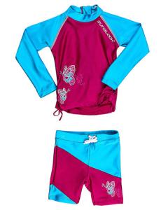 Если на Черное море, то всеобщее внимание пляжа вашей дочке обеспечено. Детей в таких купальниках или костюмах очень мало, практически нет. В майках тонких хлопковых дети встречаются. Такой купальник сохнет долго, ребенок будет по 15-20 минут ходить в мокром. Вообще, я как черноморская жительница, не понимаю, как ребенок может обгореть при правильном подходе? Пляж с 8 до 10 или с 17 до 20 часов - если вы не враг своему ребенку! Крем с защитой 50+ несмываемый, пляжный зонт, головной убор и тонкая маечка, этого достаточно.