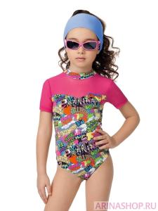 А зачем гимнастический брать, если есть закрытые плавательные костюмы. Либо берите купальник обычный и к нему футболку купальную.