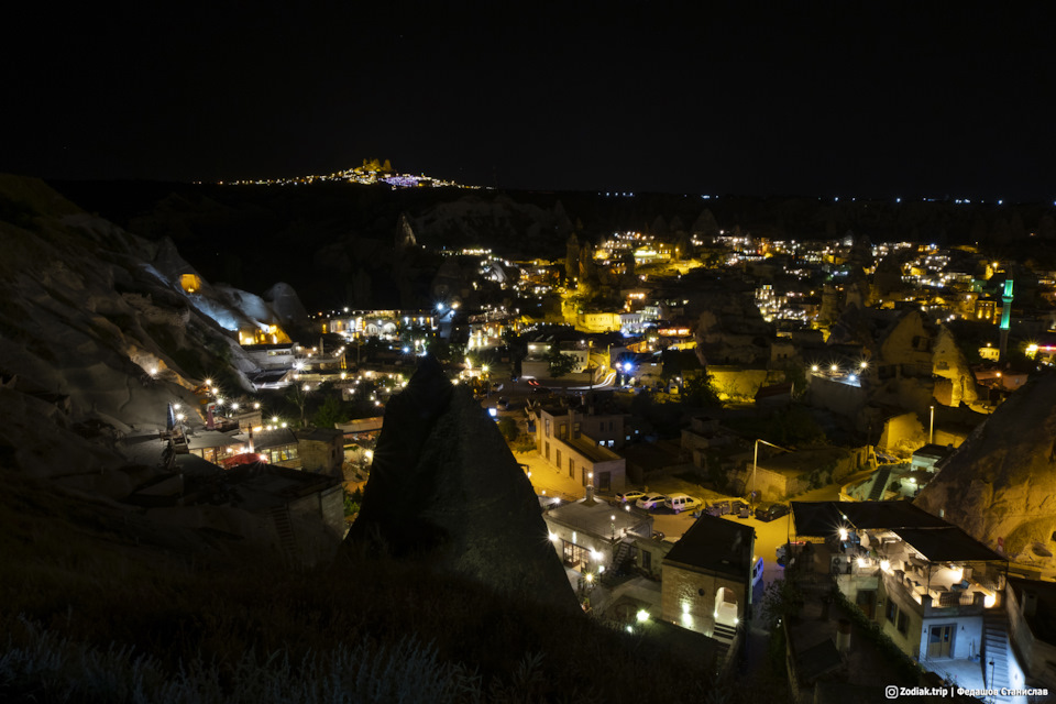 Все, кто попал в эти места, конечно же, фотографируют полет воздушных шаров и лунный ландшафт витиеватых гор. Я покажу вам нестандартные ракурсы :) Вы представляете, как выглядит Каппадокия ночью? Смотрите!