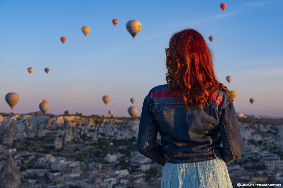 Первые лучики солнца касаются прядей волос на фоне розово-голубого неба и взлетающих ввысь десятков воздушных шаров. Именно ради такой фотографии, собрав всю волю в кулак, девушки встают в 4 утра в Каппадокии. Мою жену в это время нереально разбудить, даже если стрелять из гаубицы рядом с кроватью :) А в этот раз: чудо, в пять утра — уже на горе!