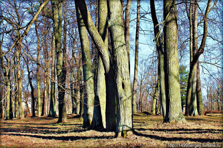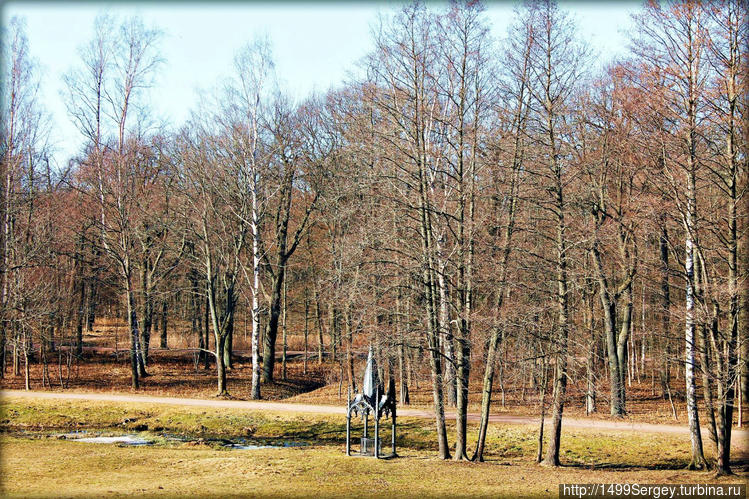 Парк мы посетили в середине апреля, когда снег уже сошёл. Стоял погожий день, было сухо, ярко светило солнце и небо было голубым-голубым. И хотя деревья стояли ещё голые, но пробуждение природы уже чувствовалось. В чистом и прохладном воздухе витало весеннее настроение.
