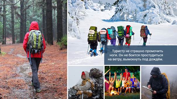 Туризм — это прекрасное и эффективное средство воспитания здорового и закалённого человека. Пусть он не даёт такого развития мускулатуры, как другие виды спорта — скажем, гимнастика, борьба или бокс. Но зато здоровью туриста могут позавидовать многие. Ему не страшно промочить ноги, он не боится простудиться на ветру, вымокнуть под дождём.