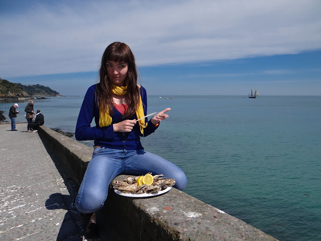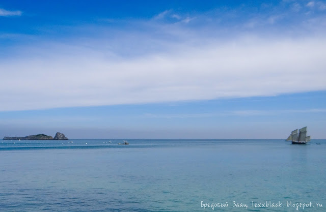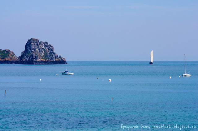 Лопать местный деликатес, сидя у моря - это ли не удовольствие от самостоятельной гульки? Мне вот даже любопытно стало: дают ли возможность пакетным туристам так приобщиться к устрицам? Или их приводят в специально проплаченный ресторан? Но вернемся к пляжу. Ведь поедание устерсов там совмещено с видом: в отлив можно полюбоваться на устричные фермы в Канкале. Прилив же позволяет лишь угадывать их темные силуэты под водой и наблюдать кораблики, плавающие по морю.