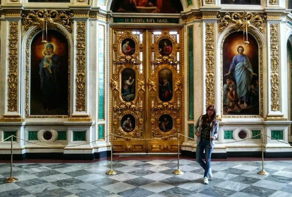 Когда я зашла в Исаакиевский собор, я почувствовала себя просто никем. Настолько ничтожной и маленькой, по сравнению с величием и красотой этого храма! Было даже не по себе. Экскурсовод рассказала много интересных вещей об этом соборе, а я насаждалась красотой храма, и тем, как люди берегут культуру и духовные ценности убранства этого собора и его историю.