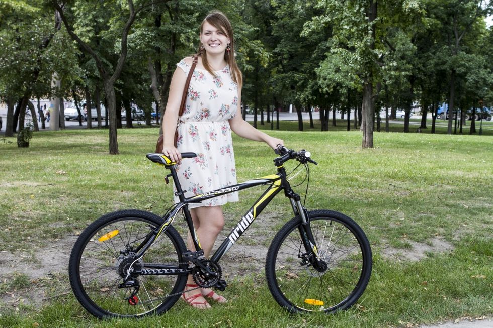 (Симпатичная девушка, счастливая от обладания Pride. Фото не постановочное судя по велотуфлям на ней. Хотя кто знает наверняка, правда?)
